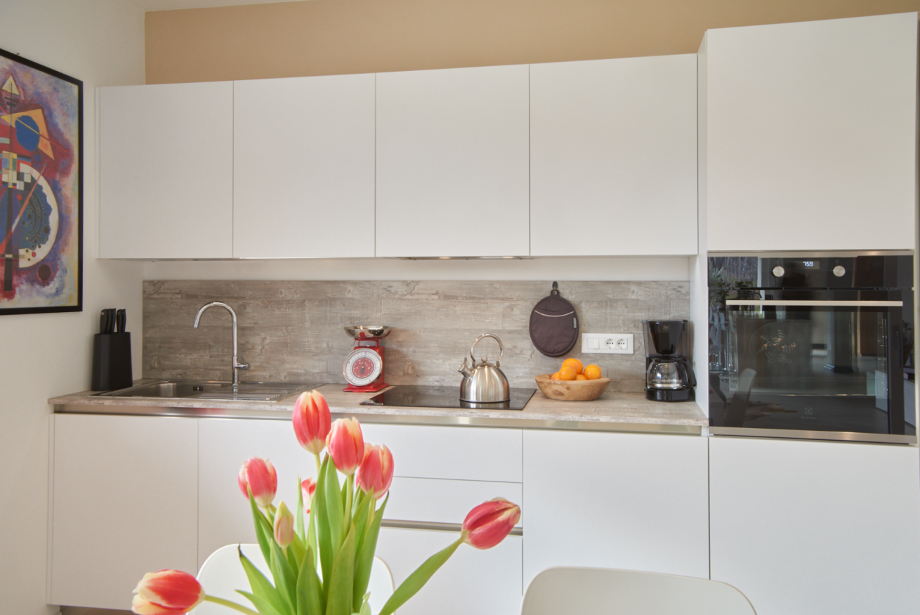 L’appartamento si estende su tutto il piano terra, contornato da un giardino di 440 m², alberi di olivi e cipressi. In giardino troverete anche di un erbario che contiene piante di basilico, rosmarino, erba cipollina, ecc. per dare un gusto in più ai vostri piatti.